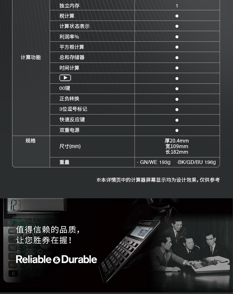 | 适配电池类型: | 纽扣电池,双重电源,太阳能 | 重量: | · GN/WE 193g · BK/GD/BU 196g |