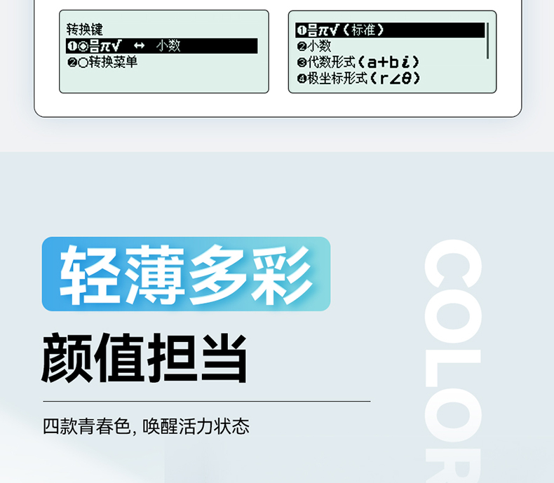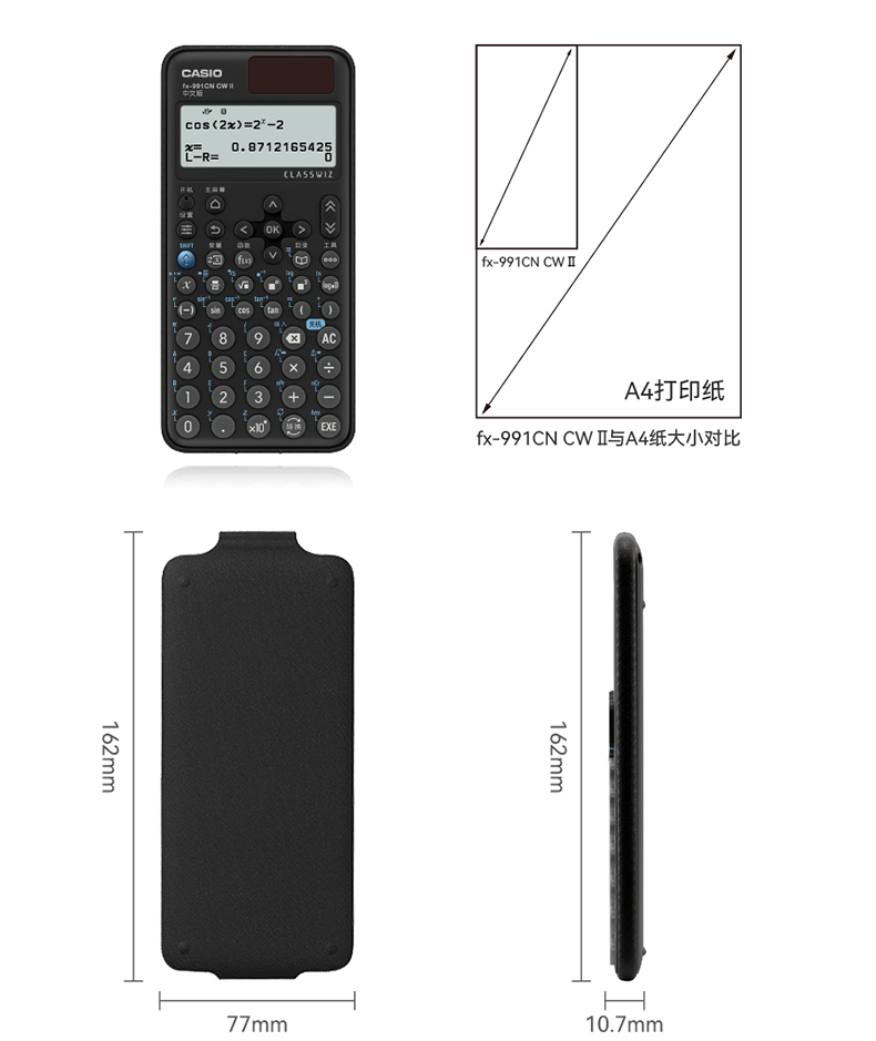| 功能关键词: | 不等式,统计计算,解方程,向量,中文显示,复数,函数表格,矩阵,三角函数 | 颜色: | 粉色,黑色,灰色 |