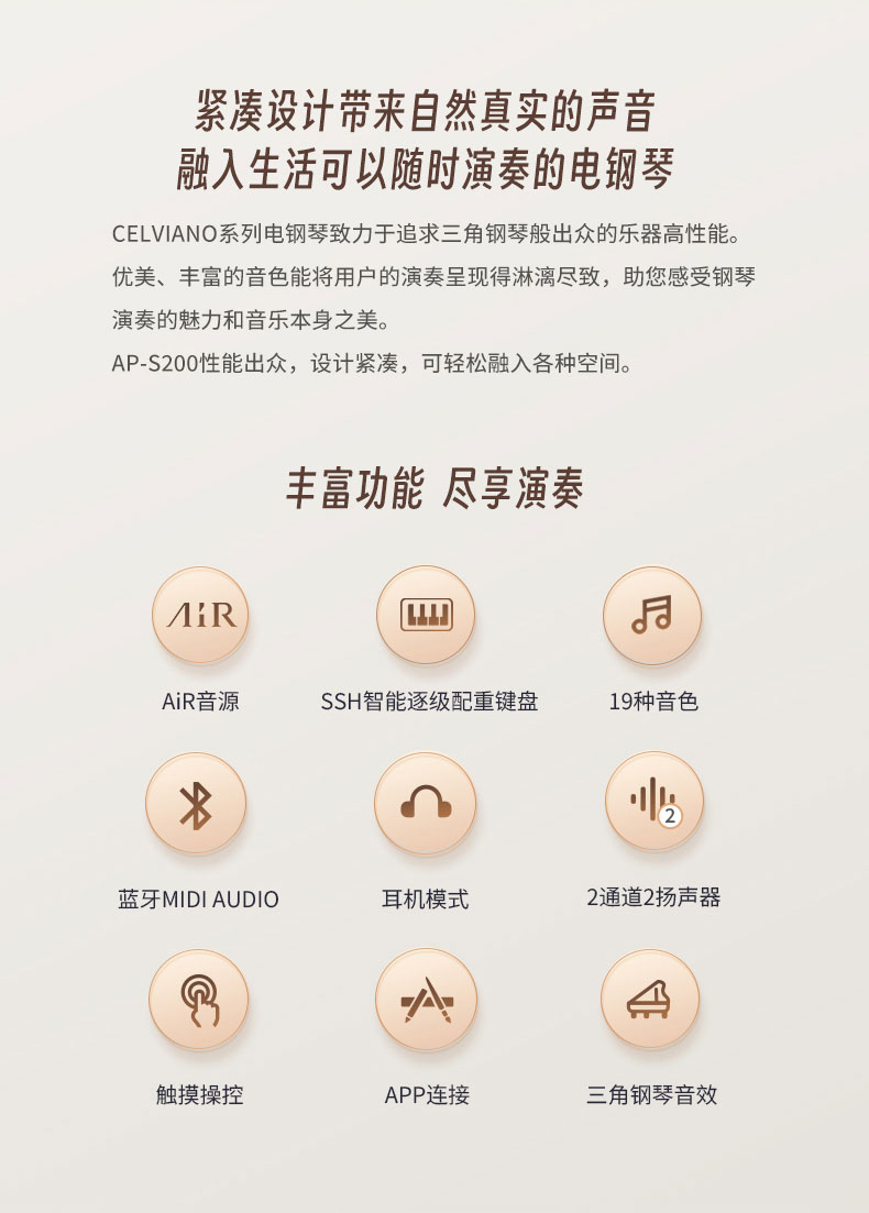 卡西欧电子乐器 电钢琴  88键重锤立式家用成人专业电子数码钢琴AP-S200