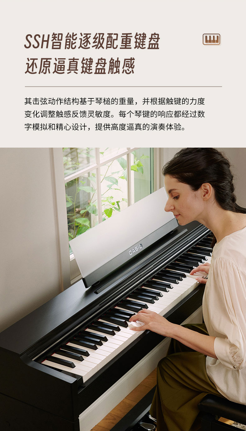 卡西欧电子乐器 电钢琴 88键重锤立式家用成人专业电子数码钢琴AP-S200