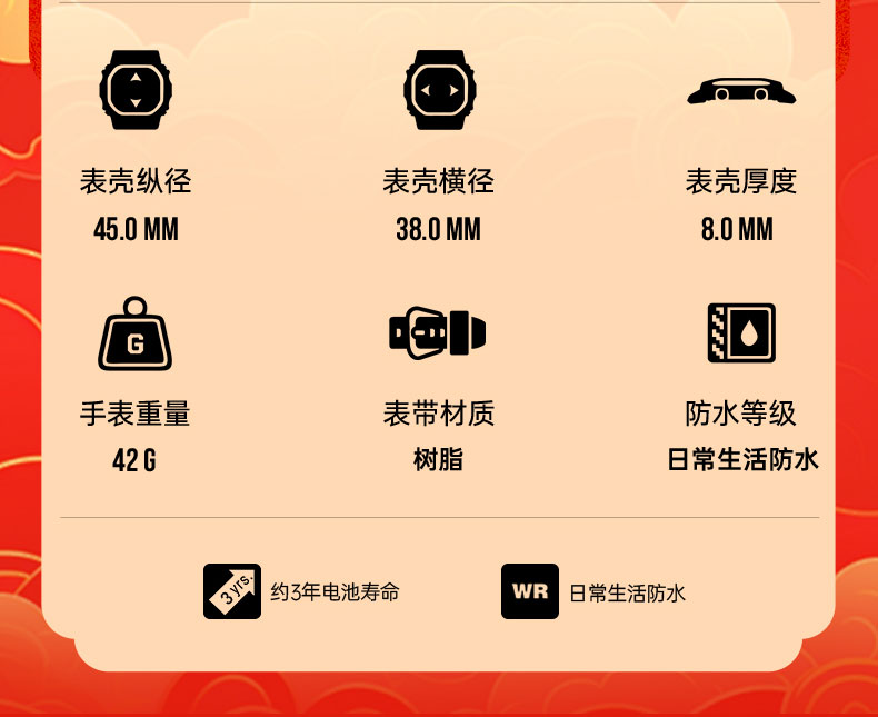 | 显示类型: | 指针 | 主要功能: | 约3年电池寿命,日常生活防水 |