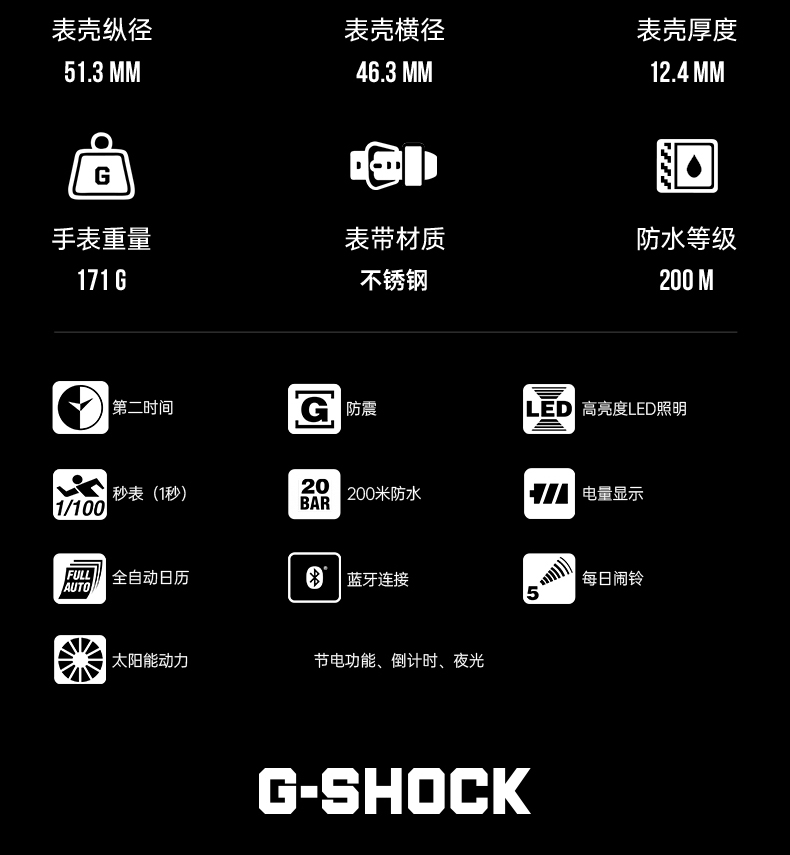 | 人群: | 男士 | 功能关键词: | 蓝牙,秒表,太阳能动力,防水,防震,指针 |
