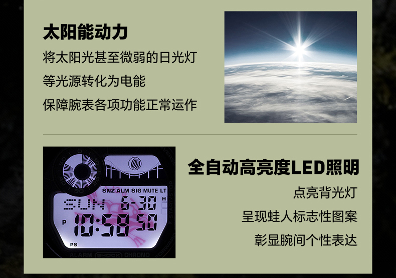 | 人群: | 男士 | 功能关键词: | 秒表,太阳能动力,防水,防震,世界时间 |